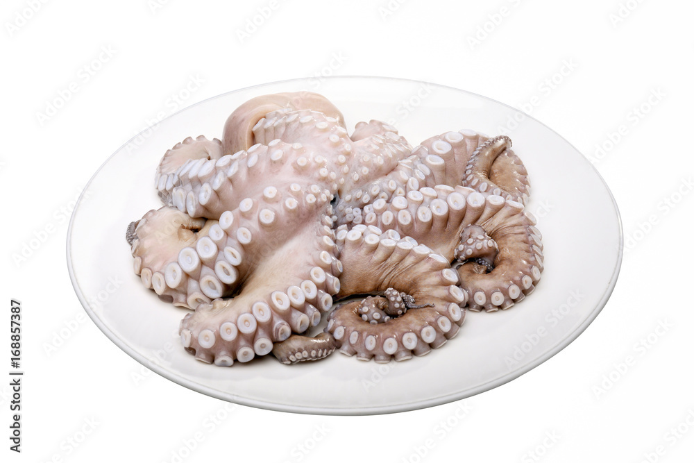 Octopus Raw Octopus Fresh Seafood On White Plate Isolated On White Background With Work Path Stock Photo Adobe Stock